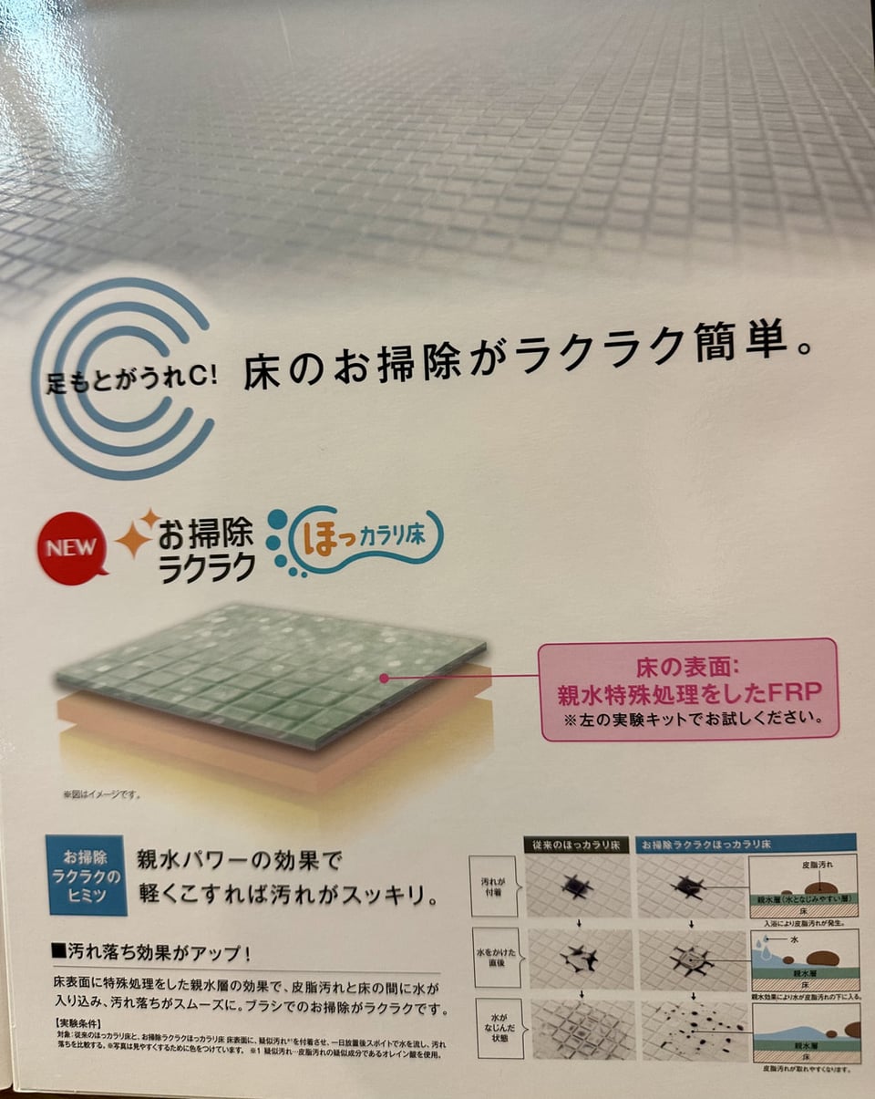TOTO自慢の「お掃除ラクラクほっカラリ床」です。