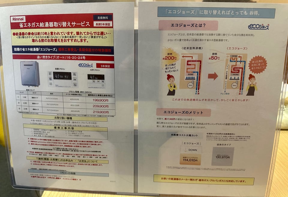 「リンナイ 省エネガス給湯器“エコジョーズ”取り替えサービス」