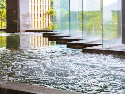 大浴場の内風呂も開放的なガラス張りになっていて