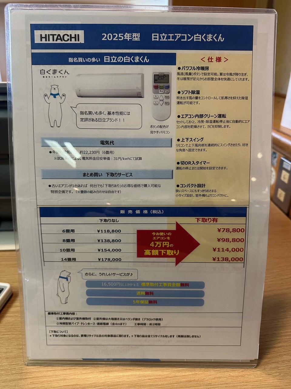 「日立ルームエアコン白くまくん」ルート限定モデルを