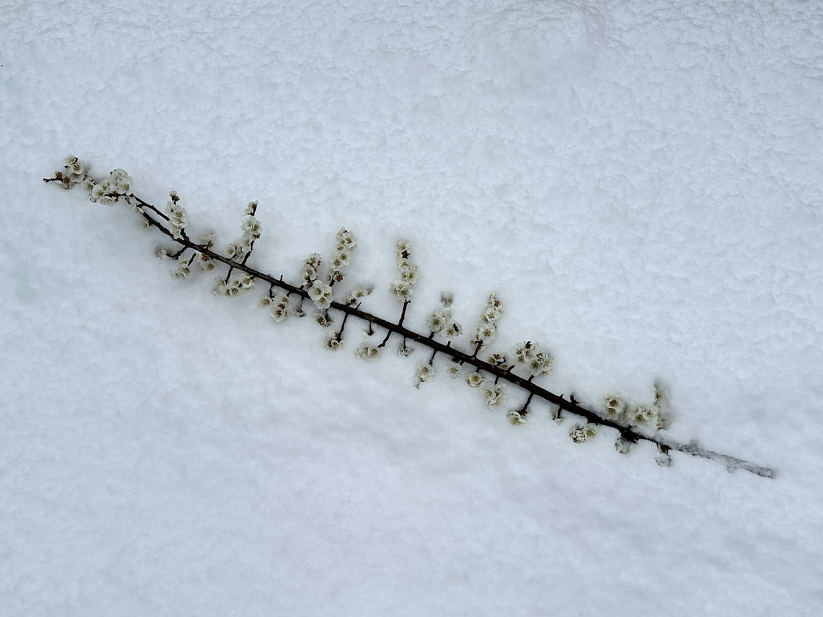 つい先日梅の香りにふと上を向いたらいつの間にか花が満開に!数日後の突然の大雪で枝が折れてしまいましたが、それでも満開に咲いていました!