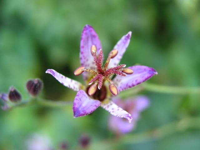内藤>日本人はこの花を、鳥のホトトギスに見立てたわけですが、面白いのは、英語名が Toad Lily、つまり「ヒキガエルのユリ」なんです。あの斑点をヒキガエルの背中の模様に見立てたわけですね。