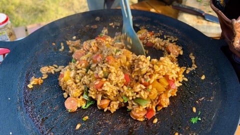 肉や魚介、野菜を香辛料と炒め合わせ、