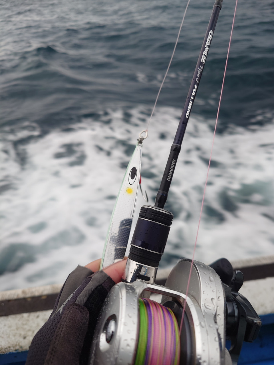 お友達から全て借り(ジグは港の釣具屋で1つだけ買いました)、