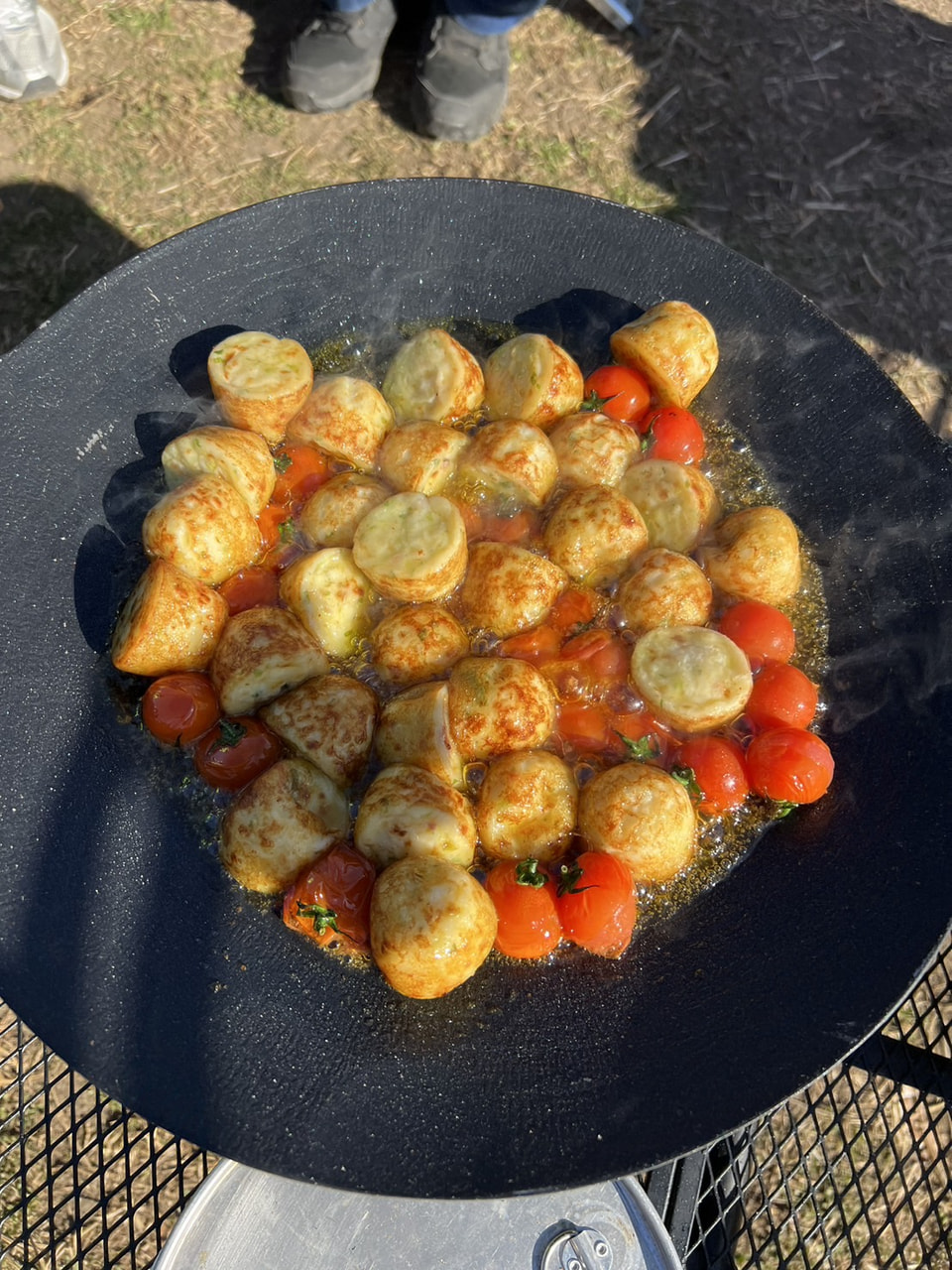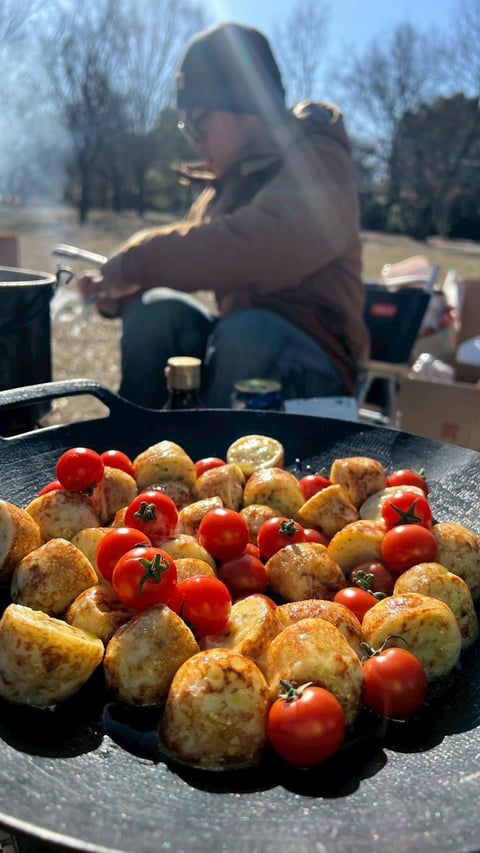 アヒージョにして熱されたたこ焼きとプチトマトがとにかく熱くて美味い!