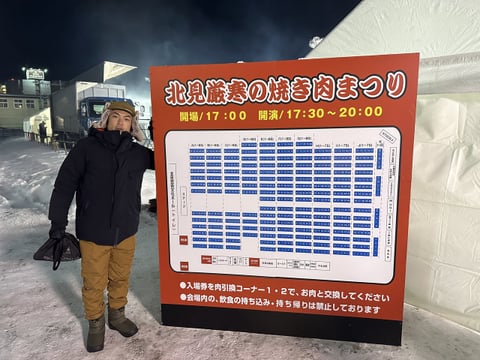 「第27回北見極寒の焼き肉まつり」に参加したというたけださん。