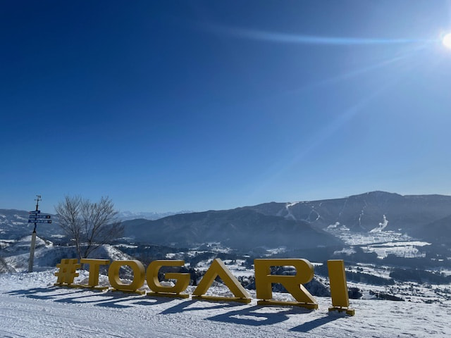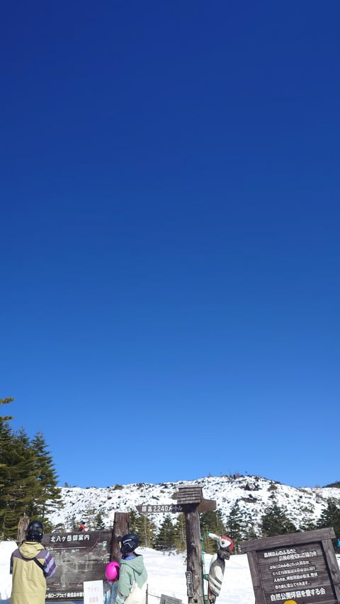 山頂からは道路を挟んで野沢温泉スキー場が見える立地。
