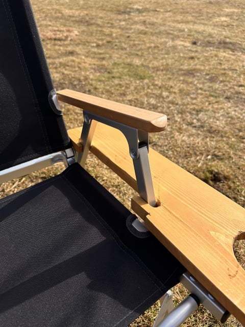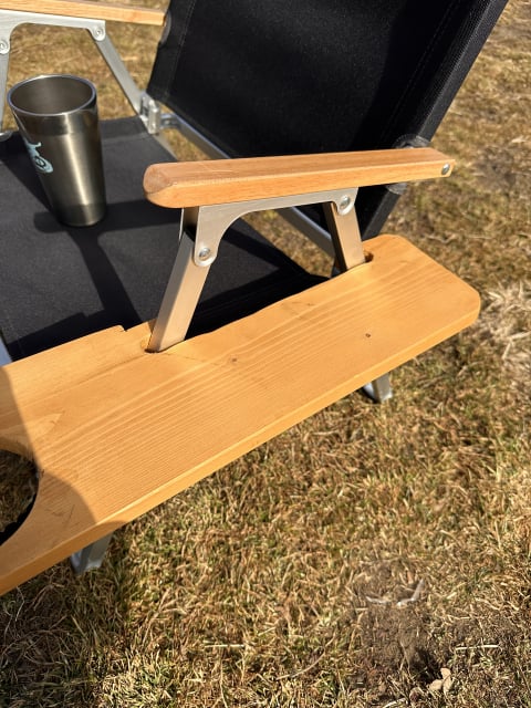 無垢の木材に、余っていた着色ステインも肘掛けと