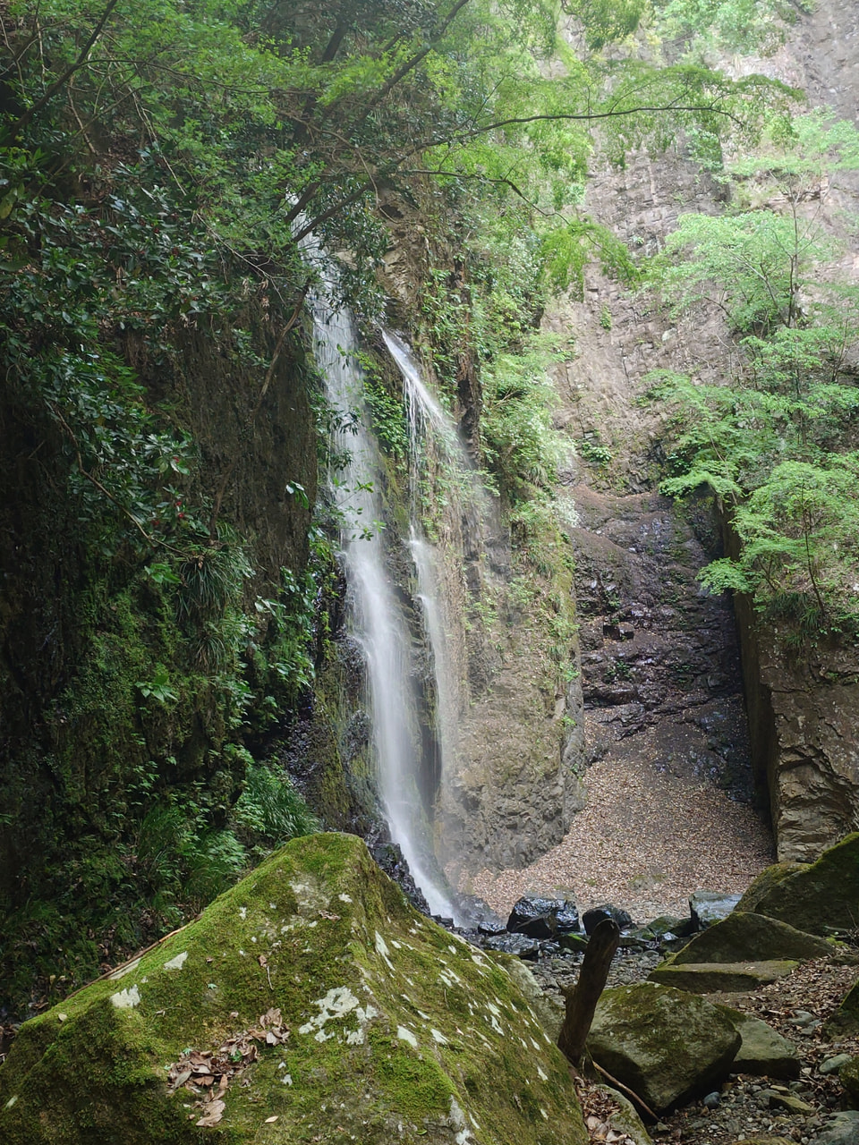 倒木があったりロープで小さい滝を越えたり、