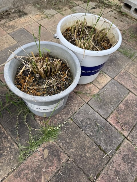 現在バケツには、ひこばえの葉が伸びているので、これもしめ縄の素材として活用しようと思います