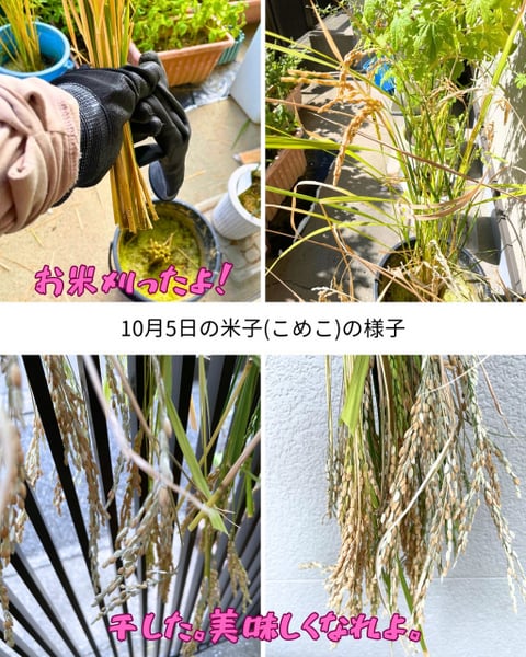 うちの米女🌾はまだ青い所もちらほらで収穫時期がよくわからないのですが💦