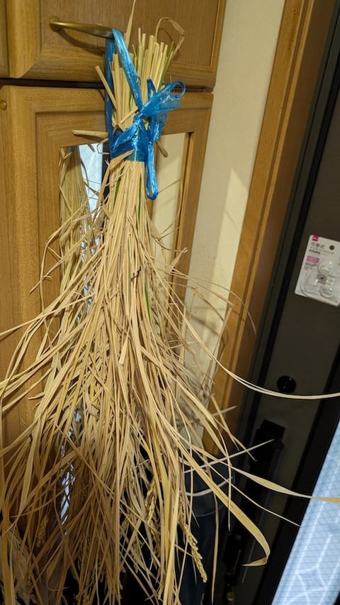 長さの違う米蔵クンを束ねて、ベランダに干しました☺
