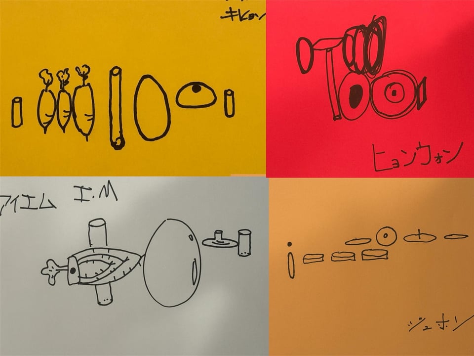なべのふたを書いて〜と言った時、ショヌくんが「ちゃんこ鍋?」と