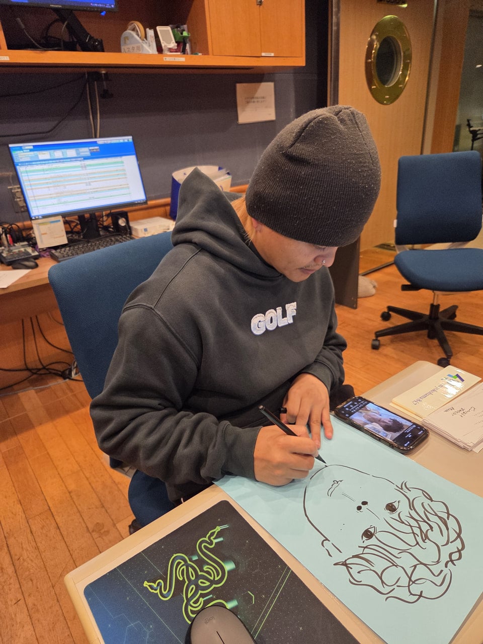 だから倫太郎くんの似てない似顔絵を描いてました