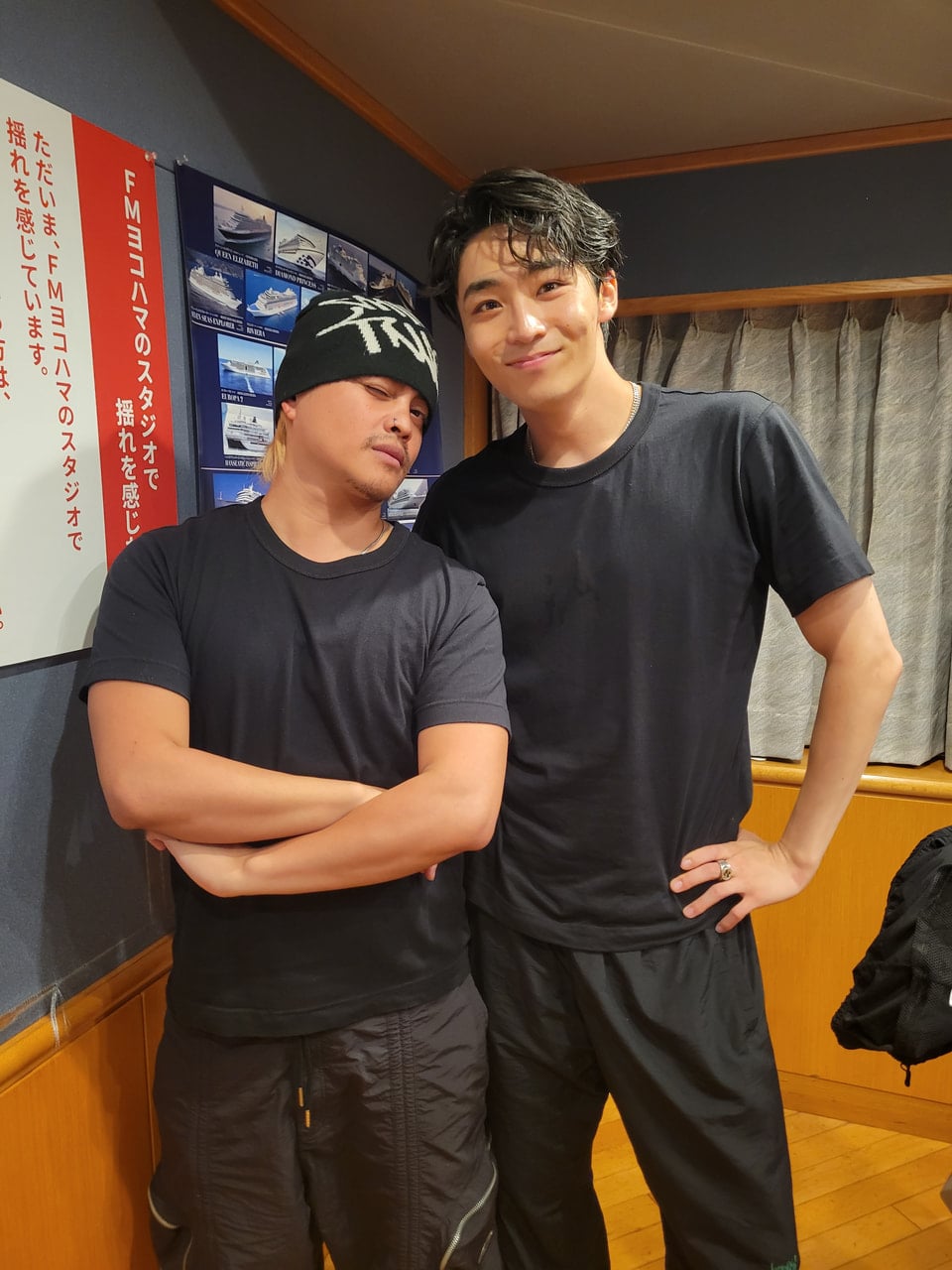 なんと2人のシャツは同じでした。ファミマの黒Tです〜〜〜