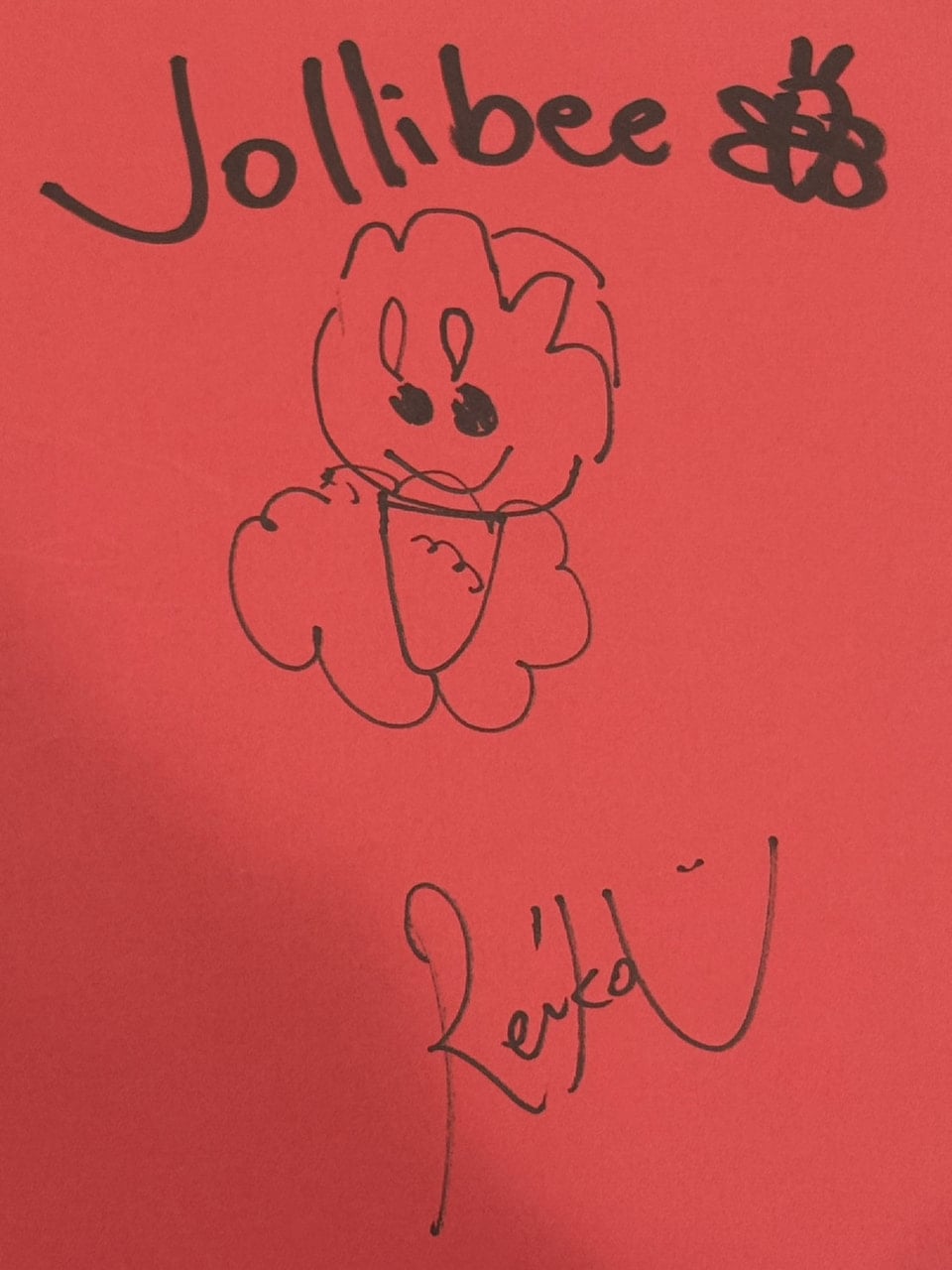 「ジョリビー」でした。ジョリビーは、フィリピンを代表するファーストフード店です。そのキャラクターです。調べたら赤い蜂だそうです。