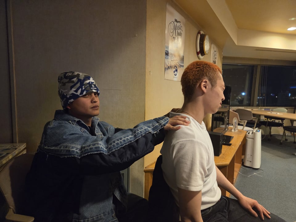 倫太郎くんの筋肉のコリをほぐしています
