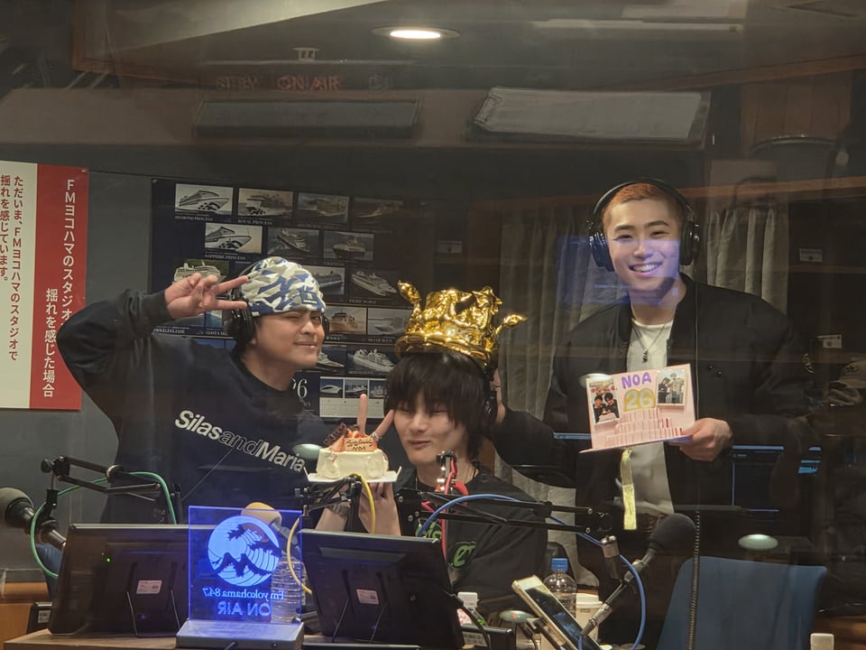 生放送中に記念撮影