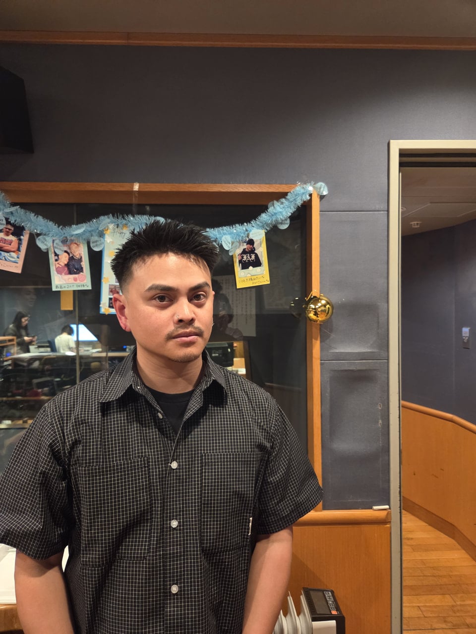 何も食べずに来たので、お腹すいてて、用意していたドリトスを食べてました。倫太郎くんにはNOAくんがFMヨコハマに来ているのを知らせていて、